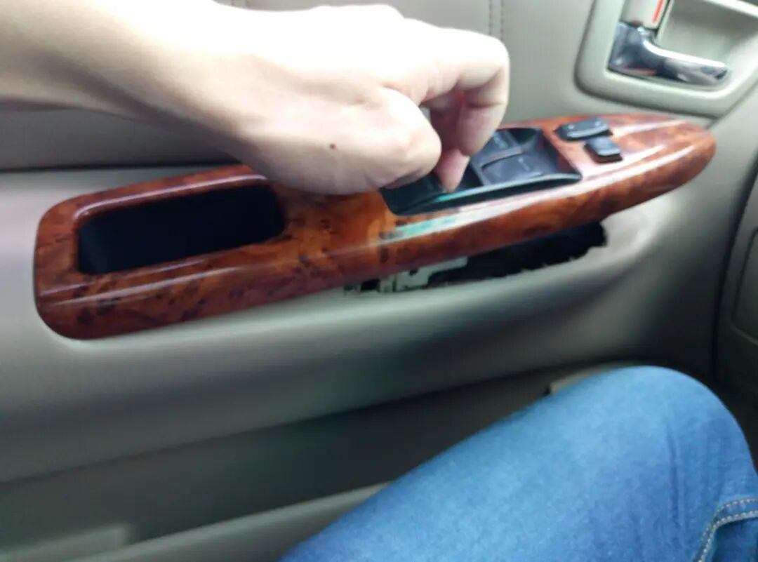 里面很多配件都有 老化现象了,后面的 两个喇叭盖子,由于长时间爆嗮,脆得跟爆米花似的。车门的控制面板也不同程度的损伤