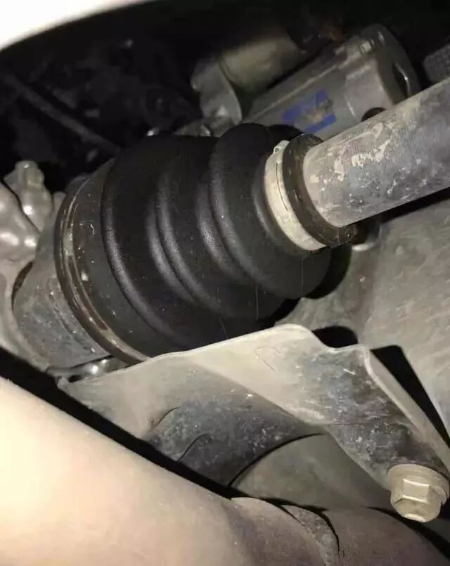 检查到前面时发现半轴防尘套有油渍在上面,说明有轻微的洇油,属于正常磨损范围,目前程度可以不处理。