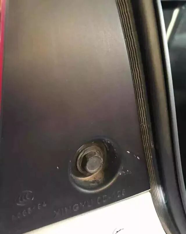 左后尾灯螺丝有拧动痕迹,证明尾灯是有过拆卸的。是自然损坏更换还是碰撞更换我们继续往下看。