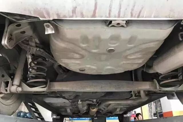 成本原因吧,底盘没有像样的护板保护,好在整体没有发现拖底。