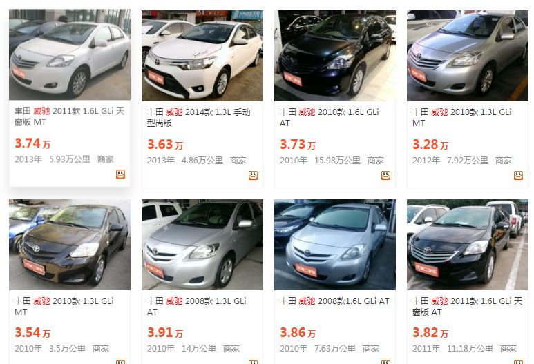 3、丰田威驰。丰田威驰。口碑好,质量稳定,油耗低,用车费用低,性价比很高,3-5万元购买二手威驰,推荐大家购买2013-2014年,3-6万公里的丰田威驰二手车,家用代步车首选。