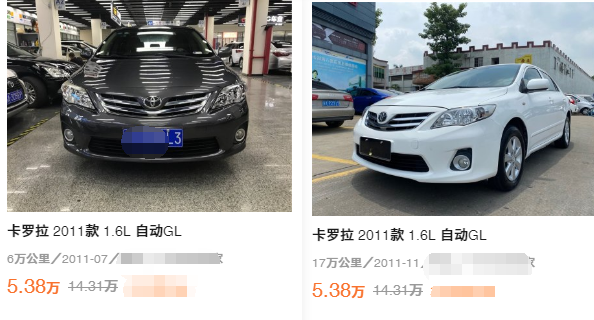 而为了验证我们是不是“买贵了”,我们又在网上找寻了几款同年的产品,同时走访了二手车市场,基本上2011年左右的卡罗拉,都得这价钱,说明二手车市场售价还是相当坚挺,尤其是1.6L中高配车型,更是吃香。