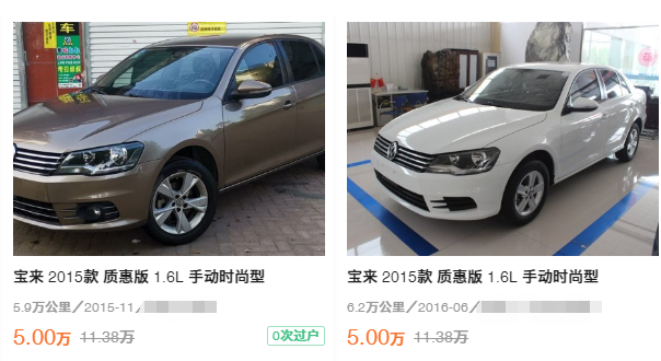 1、比如大众宝来,5万元能买到15款的宝来手动挡