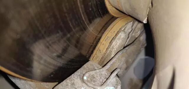 刹车片也是磨损的比较厉害,也是差不多要更换了,和当前公里数也比较符合。