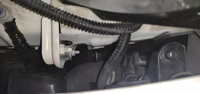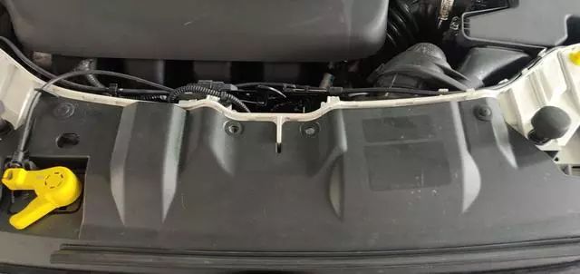 拉开引擎盖,可以明显看到前面盖板少了2颗螺丝,心里默念,拆卸过!为什么拆呢?撞了?带着疑问继续往下看。