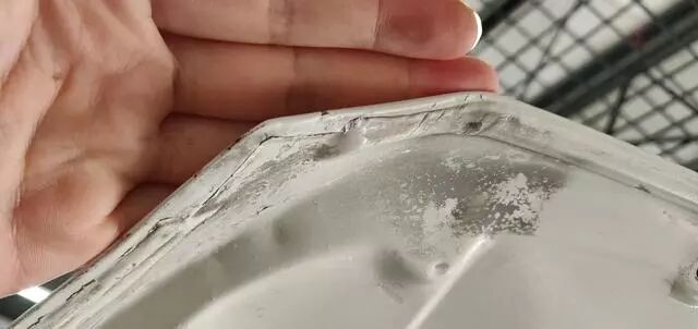 嗯,找到问题了,看这里,有明显钣金修复痕迹,前面发生碰撞了,但是没有太大问题,接着看。