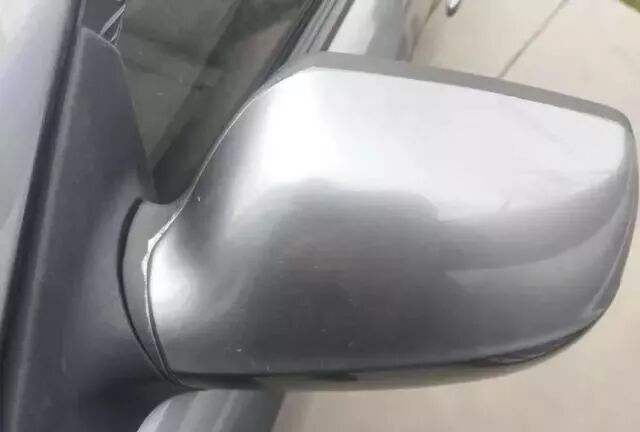 左后视镜做过漆,喷漆师傅估计是喝大了。