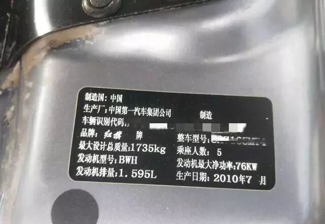 车辆铭牌,2010年7月出厂,满载总质量1.73吨。