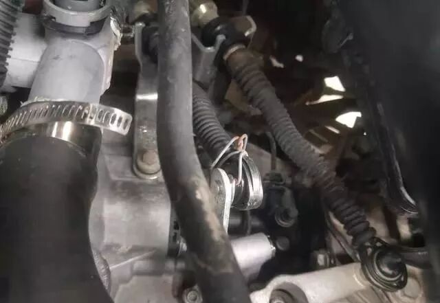 大家注意看,换挡拉线哪里是铁丝拧的,这种维修方法也经常弄。车主开着开着挂不上档,说好了先拧着凑活,结果这一凑活啥问题也没有。