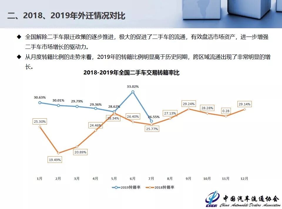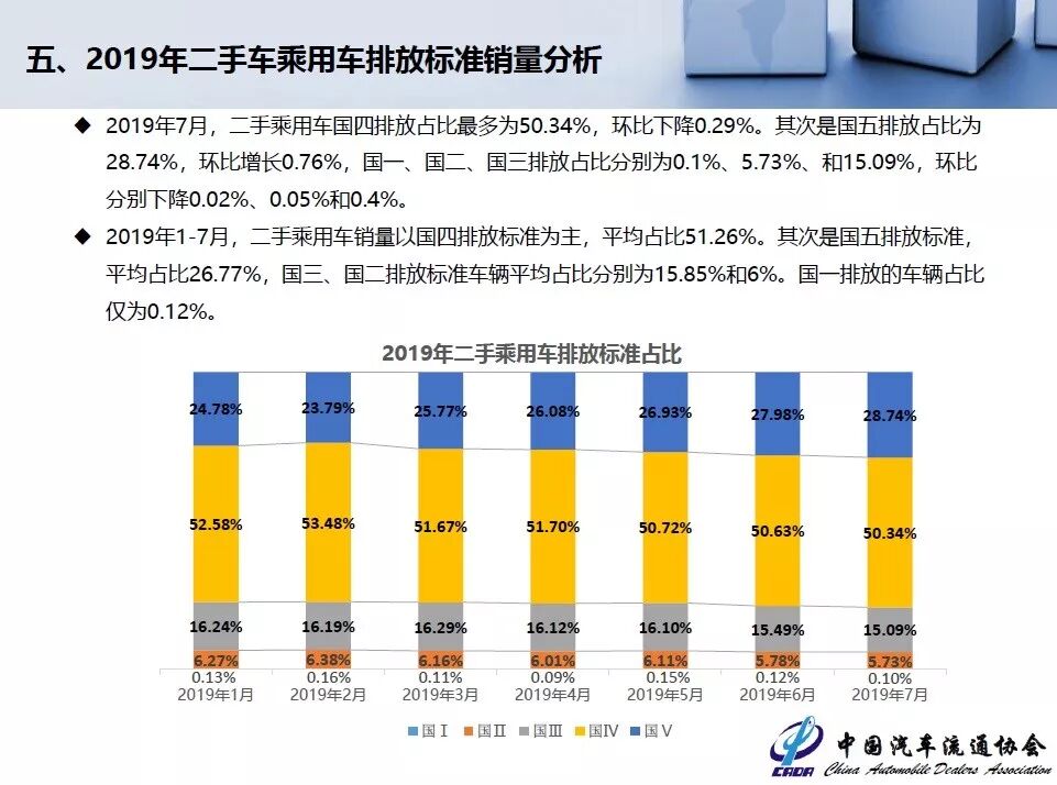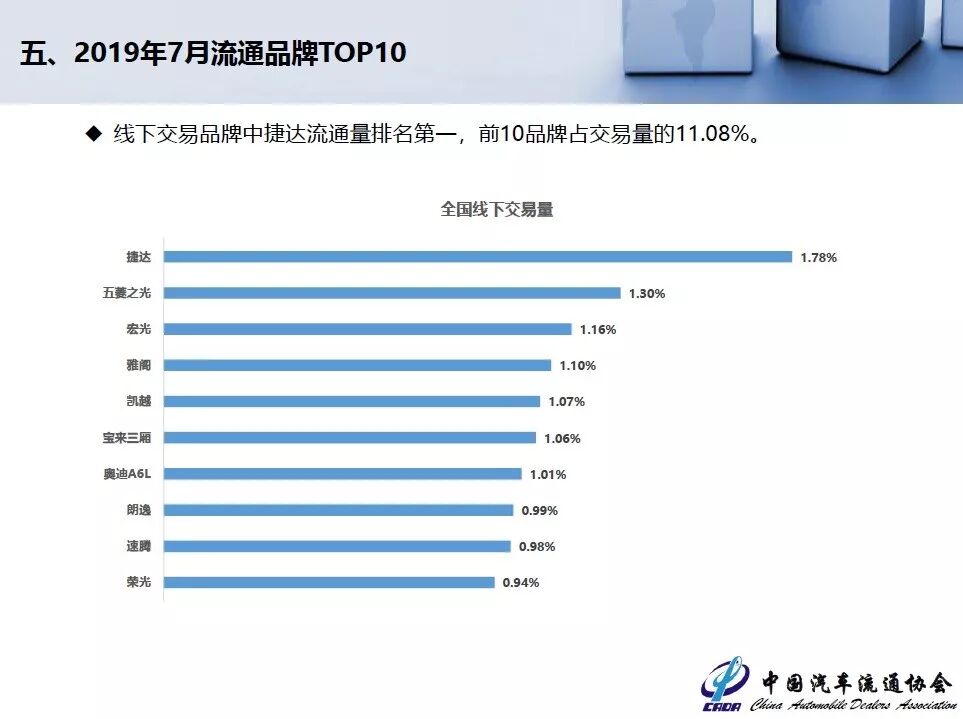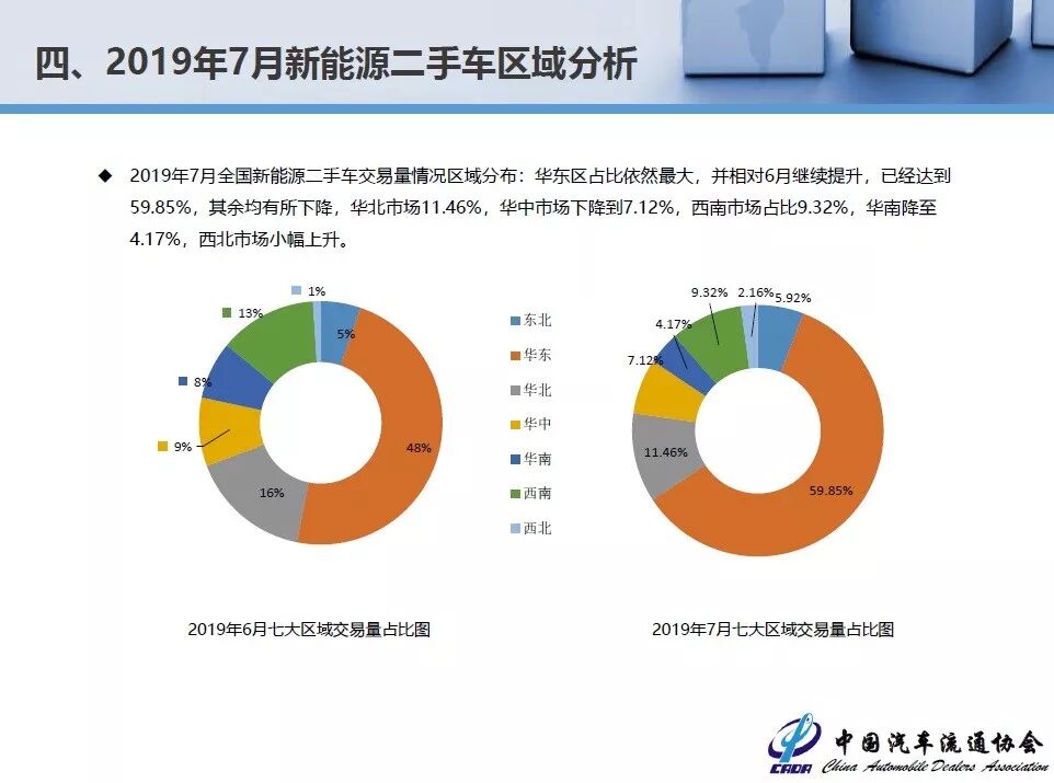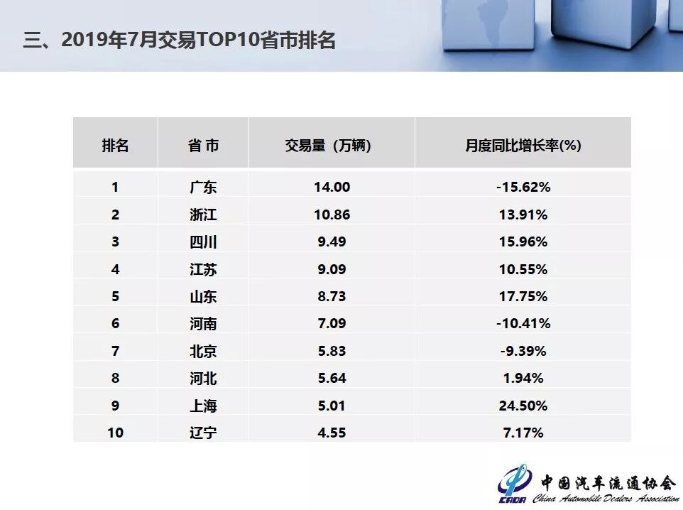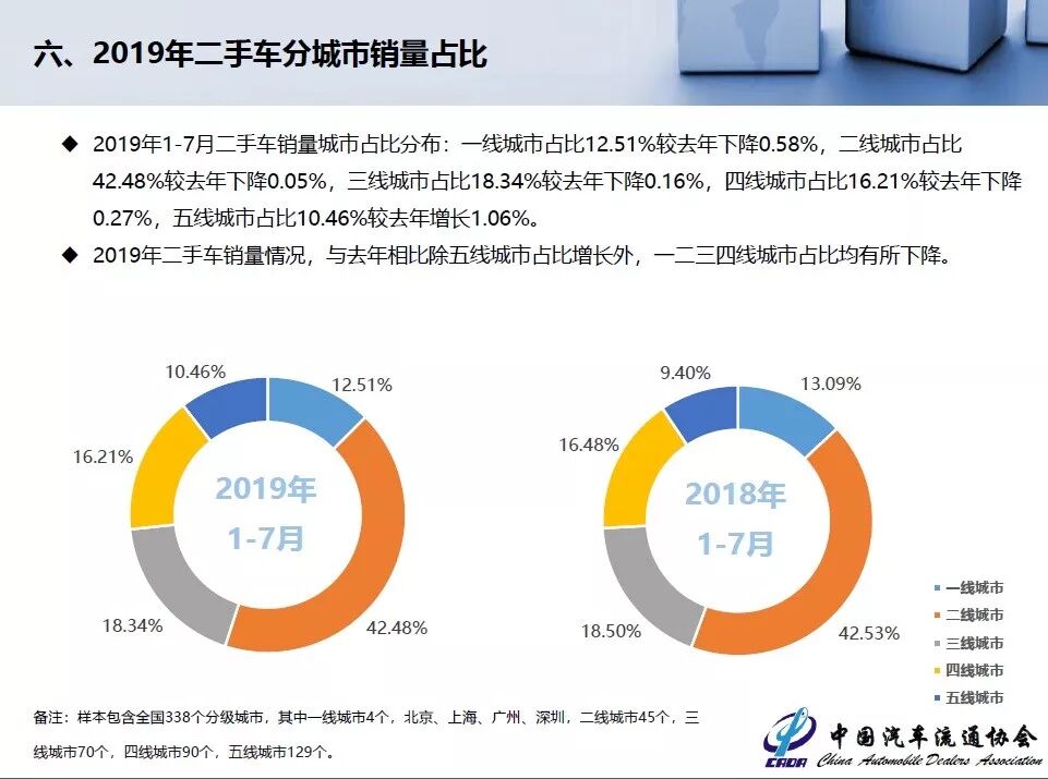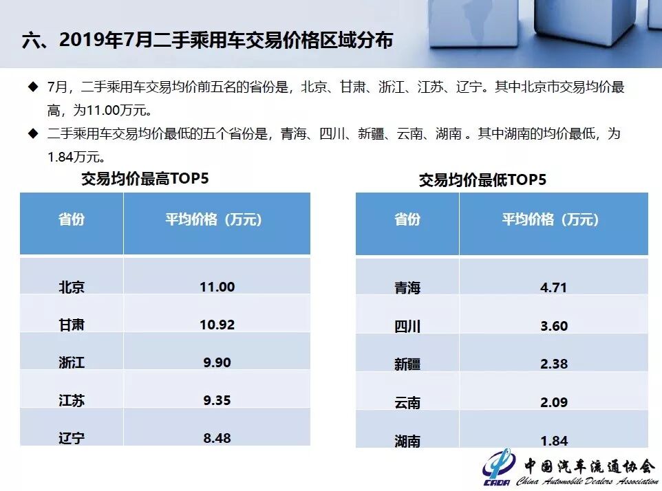 2019年7月全国二手车市场交易量121.3万辆,交易环比下降2.53%,同比增长6.73%。
