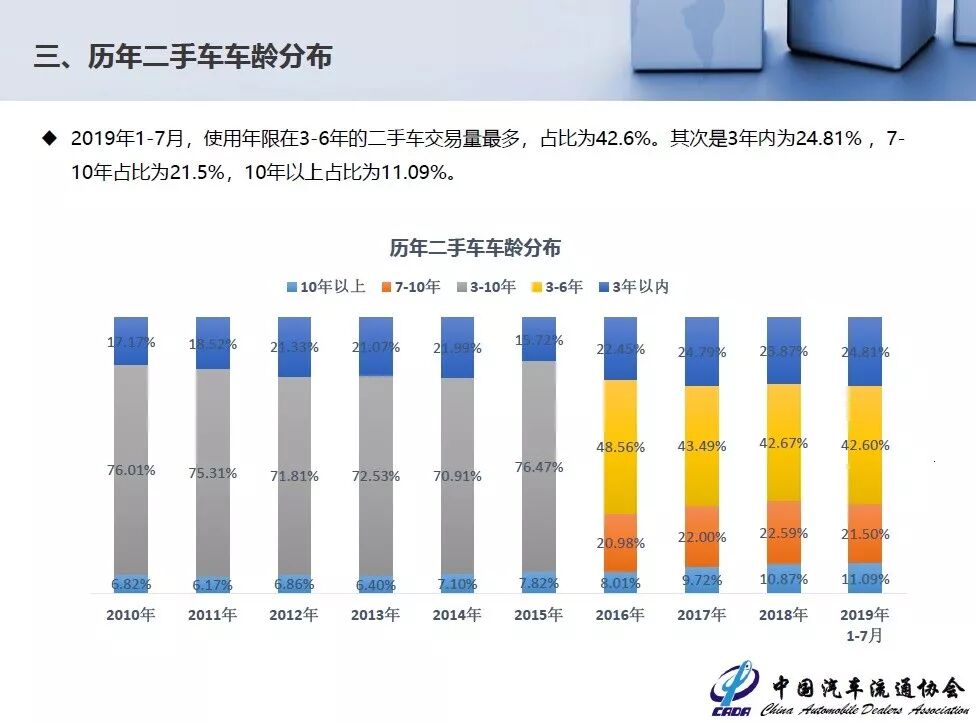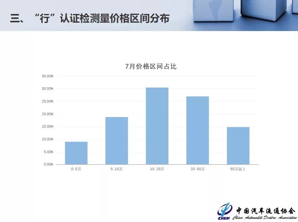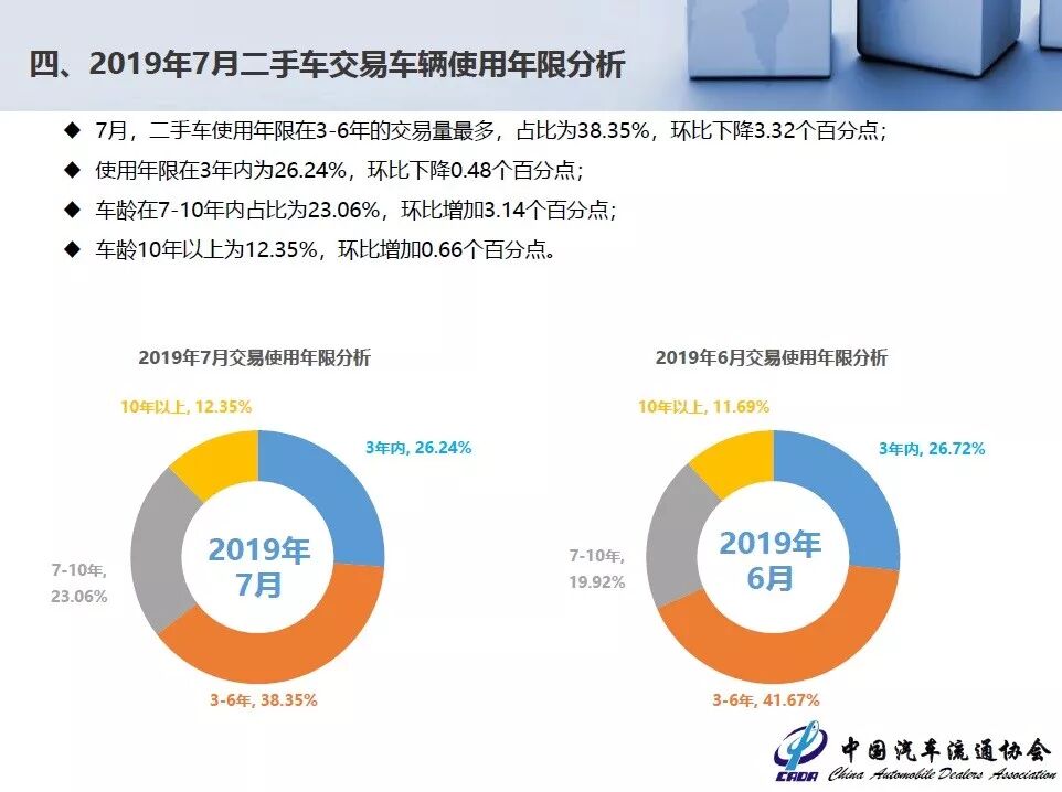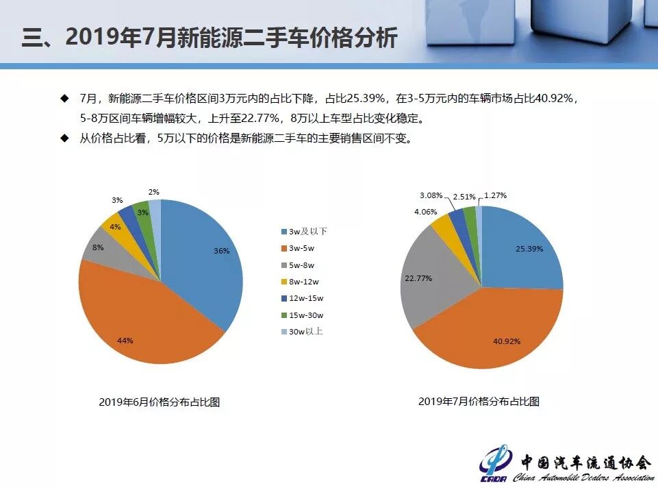 整个7月,全国二手车使用年限在3-6年的交易量最多,同时交易价格区间在3万元以下的车辆市场占比最大,为34.8%,30万元以上的价格区间二手车交易量市场占比最小,为2.39%。具体分析如下报告: