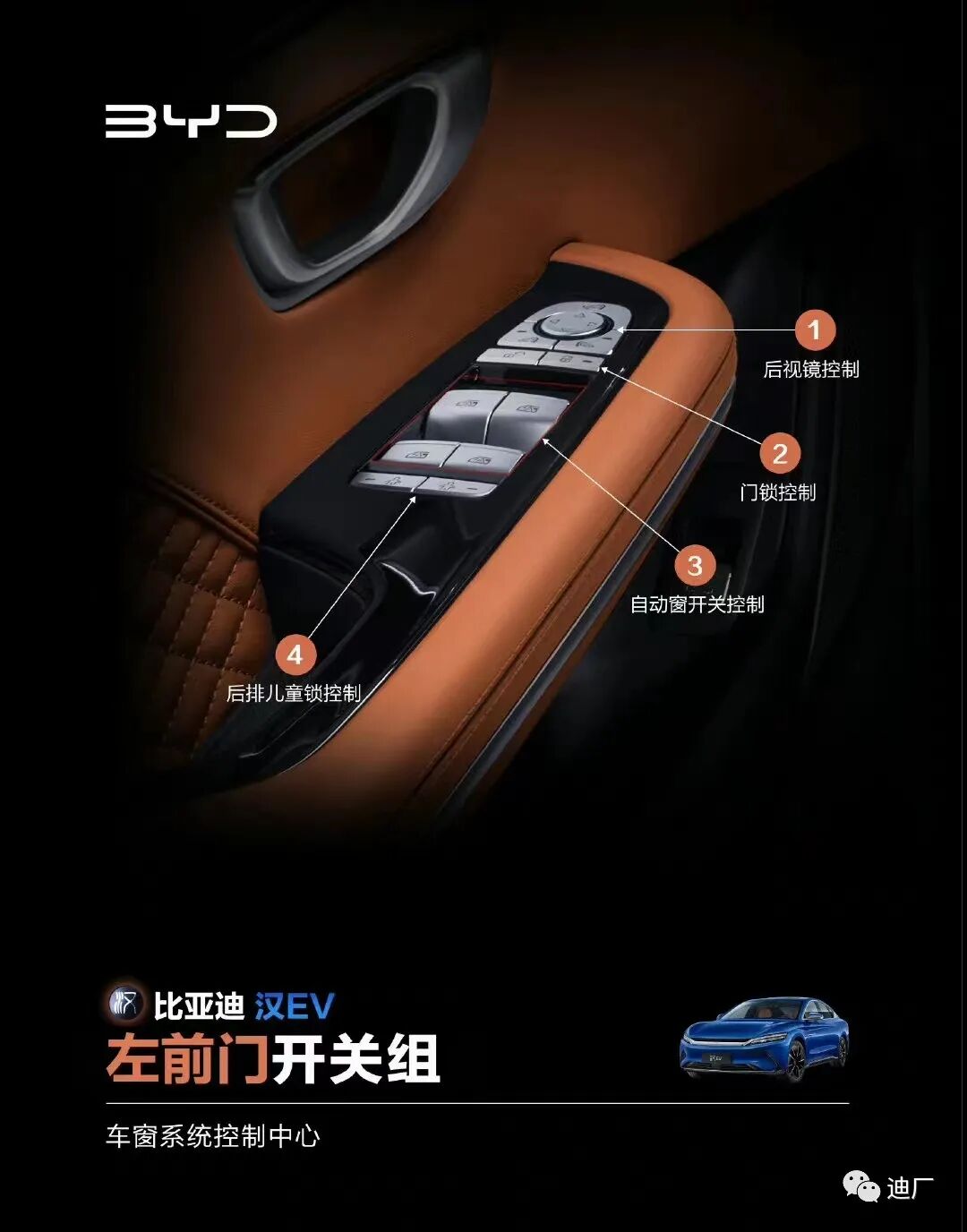 近日,比亚迪官方发布了汉EV内饰按键功能介绍,详细的描述了各按键的功能,请车友们收藏并转发!