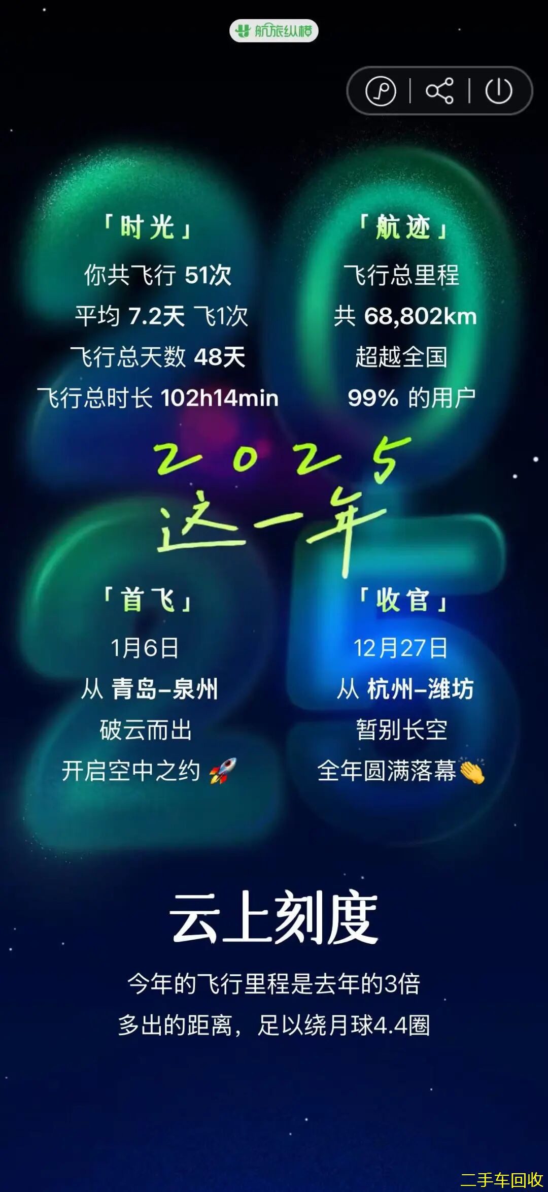 原创周小勇二手车门店运营管理2025-12-31 12:57:05浙江 2025年的最后一篇文章了,本来想偷懒不写,想想还是要写写自己的感受。这一年从南到北,从东到西,一年365天大约出差了330天。最西边到拉萨,最东江浙沪一线城市基本上都去了,最北面到长春,最南面到广州深圳。一年飞行距离68800公里,飞行了51次,乘坐高铁无数次。2025的最后一个月,也实现了今年出本书的愿望,一年总算圆满吧。