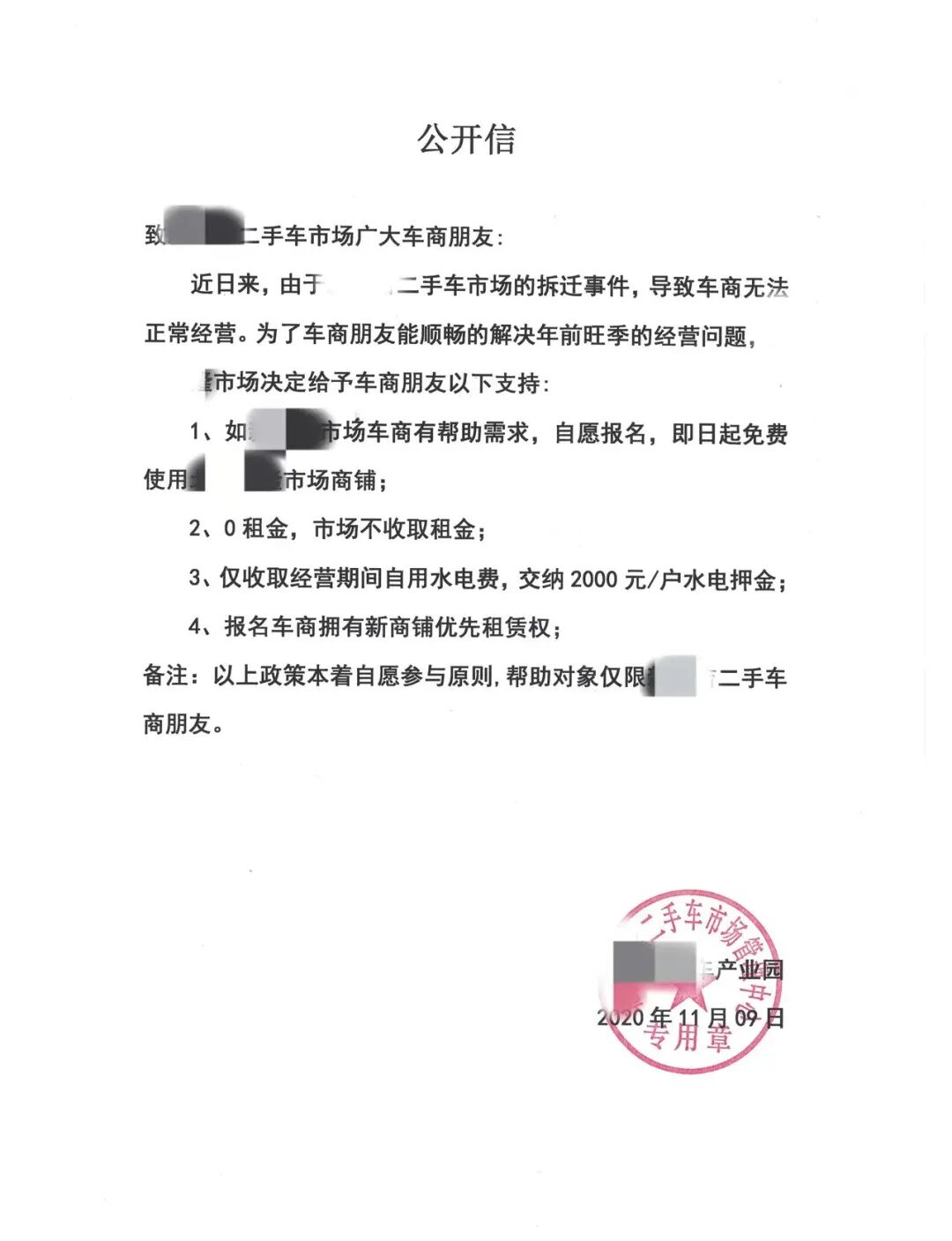 对于“被迫拆迁”的几百家车行,南宁各大二手车市场,充分发挥南宁人“能帮就帮”的精神,纷纷抛出了“橄榄枝,”提出解决方案,因拆迁事件导致那些无法继续经营的车商们,零租金免费使用市场铺面摆车,只收取经营期间的水电费用,从而解决拆迁同行车商,年前旺季的经营问题。