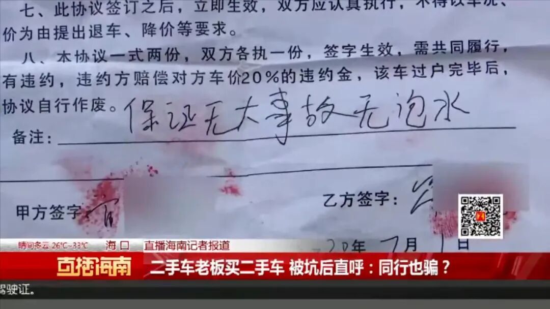 记者:既然你都不知道,为什么要在承诺书上保证无事故无泡水呢?