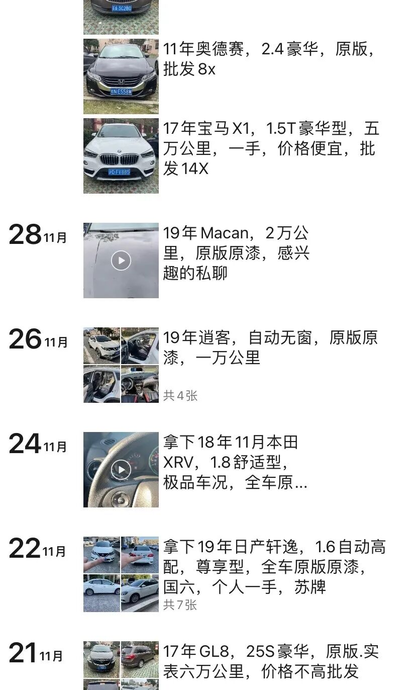 第三 朋友圈车源车型杂而且多,每天能发几十条朋友圈