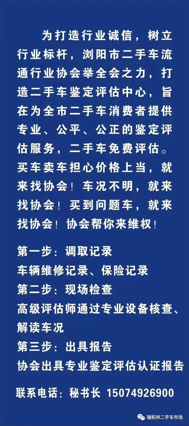 为打造行业诚信,树立行业标杆,我市二手车流通行业协会举全会之力,打造二手车鉴定评估中心,旨在为全市二手车消费者提供专业、公平、公正的鉴定评估服务。买车卖车担心价格上当,就来找协会!车况不明,就来找协会!买到问题车,就来找协会!协会帮你来维权!