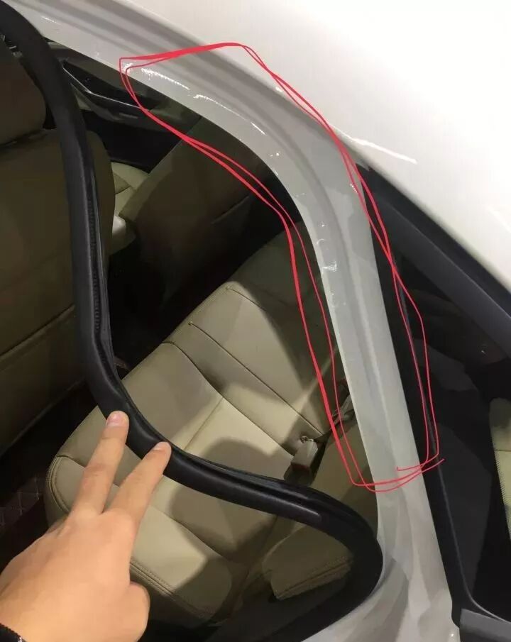 然后就是看四个门的铰链连接螺丝,看看门有没有动过。再撕开胶条看看柱子,如果我们去看车的话可以让接待自己的车商动手,避免自己弄坏了出现纠纷。因为有些车构造有些不一样。