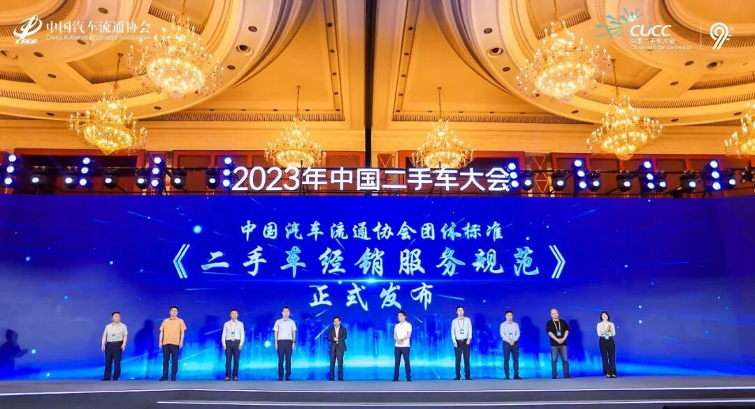 中国汽车流通协会组织行业力量共同研制了团体标准《二手车经销服务规范》,助力企业加速迈向规范化、连锁化、品牌化之路。大会现场,肖政三与青岛卡泰驰汽车科技发展有限公司、深圳市澳康达控股有限公司、平安银行股份有限公司汽车消费金融中心二手发展部、华奥安心技术服务(集团)股份有限公司、北京市旧机动车交易市场有限公司、佛山市迈卡易汽车销售服务有限公司、杭州百优卡网络科技有限公司7家参编单位代表,共同启动《二手车经销服务规范》发布仪式。